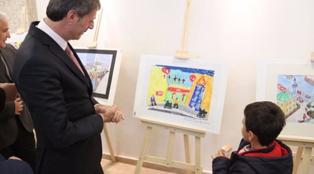 Elde Ettiğimiz Kazanımları Yok Etme HareketiydiBenim Gözümde 15 Temmuz temalı resim yarışması ile hain darbe kalkışmasının yarınlara ulaştırılması noktasında önemli bir çalışma gerçekleştirdiklerini belirten Serdivan Belediye Başkanı Yusuf Alemdar, “15 Temmuz’u sadece darbe kelimesiyle geçiştirirsek hata yaparız. Çünkü o gece; bu ülkenin bugüne kadar elde ettiği kazanımları; milli ruhu, kardeşliği, dayanışmayı, kalkınmayı ve gelişmeyi yok etme hareketiydi.” dedi.Şehitleri DüşündümYarışmada dereceye giren öğrenciler konuşmaların ardından ödüllerini Başkan Alemdar ve protokol üyelerinin elinden aldı.Ödül törenin ardından programa katılan misafirlerle birlikte sergiyi gezen ve resimleri tek tek inceleyen Alemdar, eser sahibi öğrencilerden çalışmaları hakkında bilgi aldı. İlçe birincisi Emirhan Çalışır’a eserini yaparken hissettiği duygunun ne olduğunu soran Alemdar’a Çalışır; “Resmi çizerken canı pahasına vatanı için şehit olan kahramanlarımızı düşündüm ve ortaya böyle bir eser çıktı.” dedi.