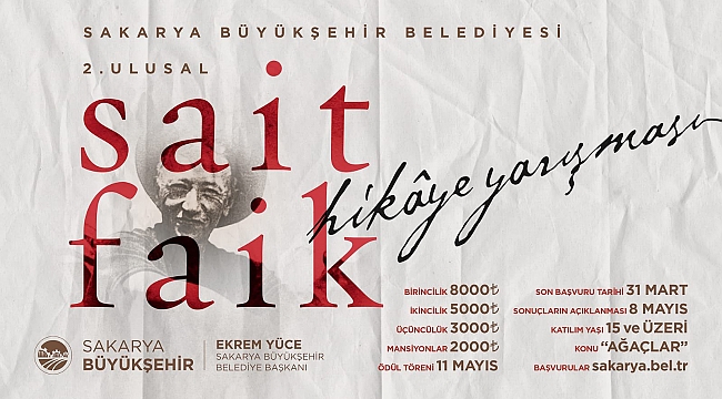 Sakarya Büyükşehir Belediyesi ve Sakarya İl Kültür Turizm Müdürlüğü işbirliğiyle düzenlenen 2. Ulusal Sait Faik Hikâye Yarışması’nda başvurular tamamlandı. Toplamda 556 geçerli başvurunun yapıldığı yarışmanın sonuçları jüri tarafından değerlendirilecek. 1906 yılında Adapazarı’nda dünyaya gelen, öykücülüğü ile Türk Edebiyatında önemli bir yer edinmiş olan Sait Faik Abasıyanık’ın anısını yaşatmak, hikâye alanında yapılan çalışmaları desteklemek ve Sait Faik’i genç kuşaklara tanıtmak amacıyla gerçekleştirilen yarışmanın konusu ise “Ağaçlar” oldu. Şairin de şiir ve romanlarında sıklıkla kullandığı temalardan birisi olan ağaçlar hikayeleri yarışmanın ödüllerini belirleyecek.Sonuçlar www.sakarya.bel.tr adresinde yayınlanacakBaşvuruların sona ermesinin ardından 1 Nisan-7 Mayıs tarihleri arasında seçici kurul değerlendirilmesi yapılacak. 8 Mayıs tarihinde sonuçların açıklanmasının ardından, 11 Mayıs tarihinde ise yarışmanın ödül töreni gerçekleştirilecek. Yarışmanın sonuçları aynı zamanda www.sakarya.bel.tr adresinden ilan edilecek.ÖDÜLLERBirincilik Ödülü: 8.000 TLİkincilik Ödülü: 5.000 TLÜçüncülük Ödülü: 3.000 TLMansiyon Ödülü (3 Adet): 2.000 TL