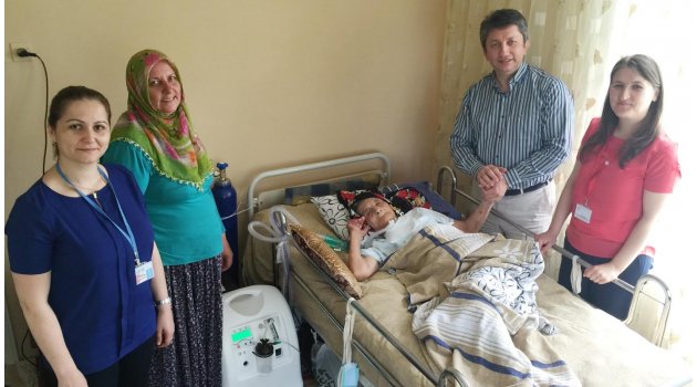 Sakarya Kamu Hastaneleri Birliği Yenikent Devlet Hastanesi, yoğun bakım servisinde tedavisi tamamlansa da solunum cihazına bağlı veya ağızdan beslenme zorluğu çeken hastaların ev ortamında sevdikleriyle birlikte olabilmesi amacıyla başlattıkları çalışma sonuç verdi. Tüm tedavilerinin ardından sadece solunum cihazı ve ağızdan beslenemediği için hastanede yatmak zorunda olan 4 hasta, Yenikent Hastanesi’nin klinikler arası oluşturduğu sistemli çalışma sonucunda Sosyal Güvenlik Kurumu (SGK)’ndan temin edilen cihazlarla evlerinde tedavi ediliyorlar.Hastane Yöneticisi Op. Dr. Murat Akgül, hasta ve ailelerini mutlu eden çalışma hakkında açıklama yaptı. Akgül, tüm tedavilerinin tamamlanmasına rağmen solunum ve beslenme nedeniyle evlerine gönderilemeyen hastaların artık evlerinde aileleriyle birlikte olabileceklerinin müjdesini verdi. Akgül, bu tür durumlarda hastanedeki genel cerrahi hekimler tarafından endoskopi ile ağızdan girilerek PEG denilen yöntemle hastaların midelerine beslenme hortumu takıldığını belirtti. Akgül açıklamasında : “PEG yönteminin yanı sıra solunum cihazına bağlı olan hastalara hekimlerimiz, boyun ön kısımdan nefes borusunda bir açıklık yaparak buraya yerleştirilen kanülden takılan ev tipi ventilatör solunum cihazı ile nefes alıyorlar” dedi.SİSTEMLİ VE UYUMLU ÇALIŞMAEv tipi ventilatör cihazını, hasta yoğun bakımda takip edilirken Göğüs Hastalıkları uzman hekimleri tarafından hastane sağlık kurulundan rapor çıkarılarak SGK tarafından temin edildiğini belirten Dr. Akgül, bu hizmetin Anestezi, KBB, Genel Cerrahi, Göğüs Hastalıkları ve hastalıkları ile ilgili diğer branş uzman doktorlarının ve hastalara yoğun bakımda hizmet veren hemşirelerin koordineli ve özverili çalışmaları sonucu verildiğini, hizmetin daha iyi yönetilebilmesi için de bu ilgili kliniklerle birlikte bir protokol oluşturulduğunu söyledi.“ALLAH DEVLETİMİZE VE DOKTORLARA ZEVAL VERMESİN”Son bir ayda uygulama ve cihaz sayesinde evine kavuşan 4 hastadan biri de 83 yaşındaki Leman Kutan. Hastane Yöneticisi Akgül ve idari personel tarafından evde ziyaret edilen Leman Kutan, evine ve ailesine kavuşmaktan memnun. Gelini Gülcan Kutan, ziyaretten duyduğu memnuniyeti ifade ederken “Allah devletimize ve doktorlara zeval vermesin. 3 ay annem hastanede yoğun bakımda kaldı. Sürekli hastanede bekliyorduk ama yoğun bakımda olduğu için annemizi çok fazla göremiyorduk, hiçbir işimizi yapamıyorduk. Devletimiz bize cihaz verdi, doktorlar da nasıl kullanılacağını bana öğrettiler. Şimdi hem evimizde anneme bakabiliyorum, onun yanındayım, hem de işlerimi yapabiliyorum. Hem annem memnun hem ben” ifadelerini kullandı.