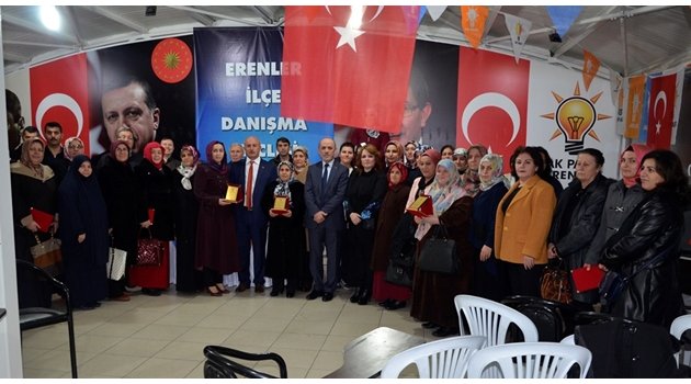 AK Parti Erenler İlçe Teşkilatının 31. Danışma Meclisi, teşkilat binasında gerçekleştirildi. Danışma Meclisine; Erenler Belediye Başkanı Cavit Öztürk, Başkan Yardımcıları Muhammet Kıratlı ve Ali Akdeniz,Belediye Meclis Üyesi Mehmet Hanefi Kara, ak parti Erenler İlçe Başkanı Resul Erdoğan Yılmaz, İlçe Kadın Kolları Başkanı Belgin Demirağ ve yönetim kurulu üyeleri, mahalle başkanları ve çok sayıda partili katıldı.“Uluyol Duble Olacak"İlçe danışma meclisinde partililere müjde veren Erenler Belediye Başkanı Cavit Öztürk, konuşmasında “Önümüzdeki yıl Sakarya Caddesi ile Modern Sanayii Sitesini birbirine bağlayan Uluyol Caddesi duble yol tamamlanacak. Uluyol Caddesi Büyükşehir Belediyesi tarafından yapılacak olan çalışma ile dört yol ışıklarına kadar uzanacak. Yine Belediye binasının hemen yanında alt yapı çalışmaları tamamlanan Evliya ÇelebiCaddesi asfalt sezonu açıldığı gibi asfaltlanarak Sakarya Caddesine, bununla birlikte kentsel dönüşüm alanını sıfırdan geçerek Karasu çevre yoluna bağlanacak.” ifadelerini kullandı.“Hastane Meselesi Hizmet Yarışıdır!”Sakarya’nın gündemini uzun süre meşgul eden hastane konusuna değinen Öztürk, “Geçen ay danışmada 1000 yataklı hastane için gerekirse savaşacağız demiştim. Ancak art niyetli kimseler bunu kullanarak ailemizin arasına fitne sokma gayretine girdi. Herkes bilsin ki 1000 yataklı hastane bizim aramızı açacak bir mesele değil; bilakis ilçeler arası hizmet yarışıdır. Bizim bölge hastanesindeki 1. önceliğimiz, olmazsa olmazımız projenin Sakarya’ya kazandırılmasıdır. Proje planlamaya alındıktan sonra tabi ki ilçemiz için 1000 yataklı hastaneye talip oluruz.”şeklinde konuştu.“Erenler Kentsel Dönüşümde Rüştünü İspatladı”Sürdürülen kentsel dönüşüm projesi ile ilgili de bilgi veren Başkan Öztürk, “Kentsel dönüşüm projesinde şu ana kadar kaydettiğimiz aşama için iyinin de ötesinde gidiyoruz diyebilirim. 280 konut ve 1 iş merkezinin inşa edildiği ilk etapta, Allah’ın izniyle şubat ayı içerisinde tapu dağıtımı yapacağız. Önceki hafta kentsel dönüşümle ilgili, Genel Başkan Yardımcılarımız Sayın Ayhan Sefer Üstün ve Sayın Çiğdem Karaaslan’a yaptığımız sunumlar kendilerini oldukça memnun etti. Erenler Belediyesi bu konuda artık rüştünü ispatlamış bir belediyedir.”dedi.“Genel Başkan Yardımcımız Ayhan Sefer Üstün’ün yeni görevi bizi mutlu etti”Öztürk konuşmasında, “ Sakarya Milletvekilimiz ve İnsan Haklarından Sorumlu Genel Başkan Yardımcımız Ayhan Sefer Üstün bizler için Sakarya için önemli bir değerdir. Türkiye’de özellikle Roman vatandaşlarımız ile ilgili yürütülen çalışmaların, Sayın Başbakanımız tarafından Ayhan beye verilmesi Kentsel Dönüşüm projemiz kapsamındaki Roman vatandaşlarımıza özgü konutlar açısından son derece önem arz etmektedir. Bakanımız yok diye üzülmeyelim zira Genel Başkan yardımcımız Ayhan beyin almış olduğu görev bir bakanlık kadar etkili ve önemli olduğunu düşünüyorum. Kendisine Ankara’da Romanlarla ilgili çalışmalarımızı anlatarak brifing verdik. Projelerimize vermiş olduğu desteklerden dolayı çok teşekkür ediyor, desteklerinin devamını bekliyorum” dedi.“Halka Hizmet Hakk’a Hizmettir!”Son olarak vaatlerin bir bir gerçekleştirildiğini ifade eden Cavit Öztürk, “Henüz 2 yılımız dolmadığı halde vaat ettiğimiz 50 projenin 29’u tamamlandı. Ayrıyeten 14 tane önemli projemizi daha tamamladık. Halka hizmeti Hakk’a hizmet olarak benimsemiş olan Erenler Belediyesi, son sürat çalışmalarına devam etmektedir.” diye konuştu.“Kadın Kollarına Teşekkür”Danışma meclisi toplantısında 1 Kasın Genel seçimlerinde Erenler kadın kollarına çalışmaları nedeniyle plaket verildi. Başkan Öztürk, “Erenler ilçe kadın kolları yönetimine, mahalle başkanlarına ve gönüllü hizmet etmiş tüm kadınlara 1 Kasım Genel seçimlerinde AK Parti siyasetine yapmış oldukları katkılardan dolayı teşekkür ediyorum” dedi