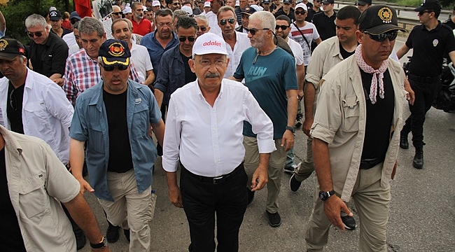 Kılıçdaroğlu açıklamalarında zulmün karşısında olduklarını belirterek, “Biz zulmün karşısındayız. Zulüm ile abat olunmaz. Zulmün yanında değil mazlumun yanında olmak bizim temel felsefemiz, temel görüşümüz. Mazlumun yanında olmak haksıza karşı durmak, haklıyı savunmak bizim temel görevimizdir. Bu yürüyüşü yapmamızın temel nedeni de haksızlıkların artık çuvala sığmıyacak boyutlara ulaşmasıdır. Adalet yürüyüşümüz süresince özellikle İstanbul'a yaklaşırken provakasyonlardan dolayı bazı duyumlar geliyor. Bütün katılan arkadaşlarıma özellikle istihram ediyorum. Zaten söylüyoruz otobüslerle de duyuruyoruz. Hangi görüşten olursa olsun hangi yaştan olursa olsun bir provakasyon olayıyla karşılaşıldığında lütfen sadece alkışlayınız. Küfürler edildi, taşlar atıldı, gübreler döküldü ne yaparlarsa yapsınlar. Biz bir ideal için yürüyoruz, bir dava için yürüyoruz, bir huzur için yürüyoruz, biz adalet için yürüyoruz. Dolayısıyla bize taşta atılsa onu gül kabul edin, bize küfür de edilse onu iyi bir söz olarak kabul edin, ne söylenirse söylensin biz Türkiye için idealimiz için çocuklarımız için herşeyden önce adalet için yürüyoruz” ifadelerini kullandı.