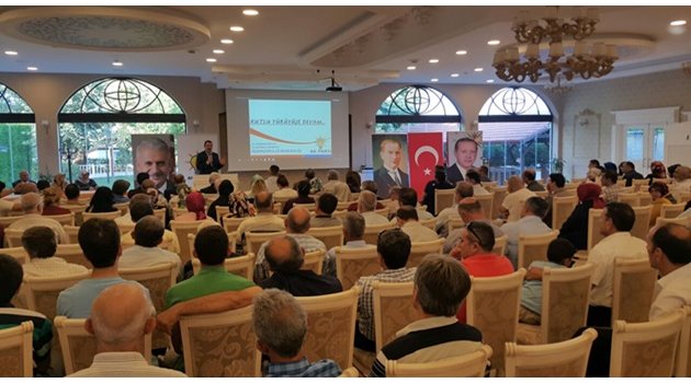 AK Parti Adapazarı İlçe Teşkilatı’nın 41. İlçe Danışma Meclisi Reisoğlu Tesislerinde Milletvekilleri ve Partililerin yoğun katılımıyla gerçekleştirildi. Adapazarı İlçe Teşkilatının Danışma Meclisine, Milletvekilleri; Mustafa İsen, Ali İhsan Yavuz, Recep Uncuoğlu, 25. Dönem Milletvekili Ali İnci, 25. Dönem Milletvekili Adayı Recep Hacıeyüpoğlu, 22-23. Dönem Milletvekili Recep Yıldırım, İl Başkan Yardımcıları Erkut Aşoğlu, Fevzi Gürsoy, Adapazarı Belediye Başkan Vekili Erol Aydın, Belediye Meclis Üyeleri, Mahalle Muhtarları ve Koordinatörleri, İlçe Ana Kademe, Gençlik ve Kadın Kolları Yönetim Kurulu üyelerinin katılımıyla gerçekleştirildi.Başkan Ak çalışmalar hakkında bilgi verdiAdapazarı İlçe Başkanı Mustafa Ak’ın 41. İlçe Danışma Meclisinde katılımcılara hitaben yaptığı konuşmada aylık faaliyetlerin yanı sıra devam eden üye güncelleme çalışmaları ve Ramazan ayı münasebetiyle yapılan teşkilat faaliyetlerini aktardı. İlçe Başkanı Mustafa Ak “Üye güncelleme çalışmalarımızla partimize ilçemiz sınırlarında üye olan vatandaşlarımızı ziyaret ederek bilgilerini güncelliyoruz. Şuan için 25.800’ü aşkın üyemizi evlerinde ziyaret ederek bizlerde mevcut olan üyelik bilgilerinde değişiklik olup olmadığını kontrol ettik. Mübarek Ramazan ayı içerisindeyiz. Teşkilat olarak tüm kademelerimizde “Sofranız soframızdır” diyerek başladığımız çalışmayla Yönetim Kurulu üyelerimiz her akşam farklı mahallelerdeki farklı ailelerin iftar sofralarına misafir oluyorlar, oruçlarımızı vatandaşlarımızla birlikte açıyoruz. Ana Kademe, Gençlik Kolları ve Kadın Kolları Yönetim Kurulundan arkadaşlarla birlikte bu çalışmayı sürdürüyoruz. İftarlardan sonra Yönetim Kurulu üyelerimizle birlikte mahalle ziyaretleri gerçekleştirerek vatandaşlarımızla yapılan çalışmalar hakkında istişarelerde bulunuyoruz” dedi. 41. İlçe Danışma Meclisi İlçe Gençlik Kolları Başkanı Sinan Likos’un ve İlçe Kadın Kolları Başkanı Fatma Varol’un sunumlarıyla devam etti. Milletvekili Mustafa İsen meclis çalışmaları hakkında bilgi vererek Başkanlık sistemiyle ilgili olarak partililere hitap etti. Ali İhsan Yavuz gündemle ilgili olarak terör olayları ve Anayasa çalışmaları hakkında konuşarak bilgi verdi. Adapazarı Belediye Başkan vekili Erol Aydın, mahallelerde yaz mevsimiyle birlikte başlayan asfaltlama ve tretuvar çalışmalarıyla ilgili olarak partilileri ve yöneticileri yapılan çalışmalarla ilgili olarak bilgilendirdi. Toplantı sonrasında iftar 41 İlçe Danışması sonrasında toplantıya katılan partililer ve davetliler programında devamı olan iftara katılarak birlikte oruç açtılar. İlçe Başkanı Mustafa Ak, iftar programına katılan vatandaşlara tek tek ilgilendi. Mahalle Başkanları, İlçe Yöneticileri, Belediye Meclis üyeleri, İl Başkan Yardımcıları ve Milletvekilleri yapılan iftar sonrasında çay sohbeti yaparak vatandaşlarla hasbıhal etti.