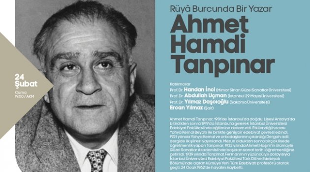 Büyükşehir Şubat Kültür Sanat etkinlikleri kapsamında “Rüya Burcunda Bir Yazar Ahmet Hamdi Tanpınar” konulu panel düzenlenecek. Program 24 Şubat Cuma günü AKM’de gerçekleştirilecek.