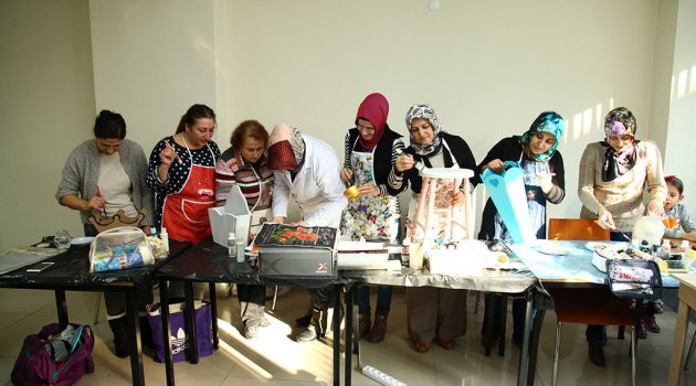Büyükşehir SAMEK’lerde ahşap boyama eğitimlerine katılan kursiyerler birbirinden renkli eserler ortaya çıkarıyor.