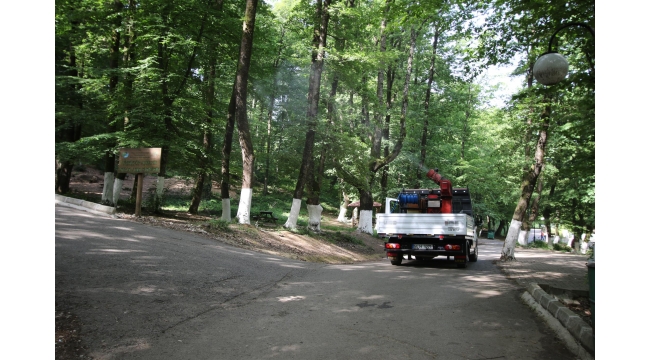 Vatandaşlardan gelen istek ve şikayetler üzerine harekete geçen Sağlık İşleri Müdürlüğü ağaçlardaki tırtıl ve larvaların üremesini engellemek için ağaçların yüksek kesimlerine ilaçlama yapmayı sağlayan yeni makine alımı gerçekleştirildi.