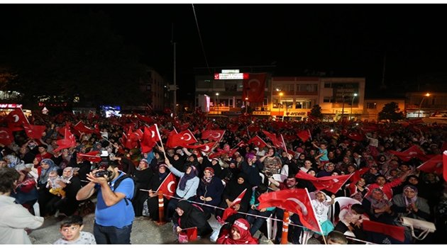 FETÖ’nün darbe girişimine karşı 10 gündür direnişini sürdüren Akyazılılara hitap eden Başkan Toçoğlu, “15 Temmuz gecesi milletin verdiği makamları, milletin verdiği paralarla alınan silahları düşmana karşı kullanması gereken hainler, maalesef kendi vatandaşlarının üzerine ateş yağdırdırlar. Ülkenin her yerinde vatandaşlar bu kalkışmaya dur dedi. Öyle milletin verdiği silahları millete doğrultarak makamlara çökme devri geldi geçti” dedi.