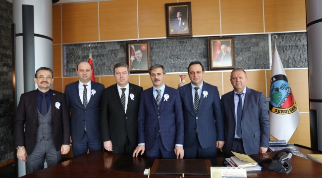 Sakarya Serbest Muhasebeci Mali Müşavirler Odası Başkanı Ertuğrul Kocacık ve yönetim üyeleri, 1-7 Mart Muhasebeciler Haftası münasebetiyle Serdivan Belediye Başkanı Yusuf Alemdar’ı makamında ziyaret etti.