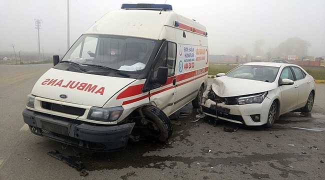 Ambulans ile otomobilin çarpışması sonucu meydana gelen kazada 1 kişi yaralandı.