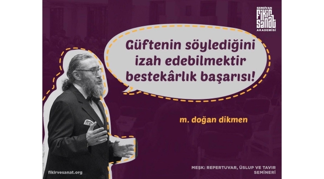 Türkçe’nin İnceliklerini Prof. Dr. Hayati Develi AnlattıAkademik ve Kültürel Çalışmalar Programı kapsamındaki “Türkçe Defteri” dersinde, öğrencilere Dil ve Türkçe üzerine bilgi paylaşımında bulunan İstanbul Üniversitesi Edebiyat Fakültesi Dekanı Prof. Dr. Hayati Develi, “Dil nedir, Dil aileleri nasıl oluşmuştur, Türkçe nasıl doğdu ve bugüne geldi, Günümüzde dil sorunları nelerdir?” konularında Akademi öğrencilerini aydınlattı.Yunus Emre Enstitüsü Başkanlığı da yapmış olan Prof. Dr. Develi, Türk dilini, tarihini, kültürünü ve sanatını tanıtmak amacıyla yayımladığı çok sayıda makale ve yazısını da Akademisi’de katılımcılarla paylaştı.Doğan Dikmen’den Türk Müziği MeşkiTRT Ses Sanatçısı ve Program Yapımcısı Mustafa Doğan Dikmen de, Klasik Türk Müziği’nin kadim eserlerini usta-çırak ilişkisi çerçevesinde meşk yoluyla, Türk Müziği Meşki dersinde katılımcılarına aktardı.Ses kullanma ve ses hakimiyeti gibi teknik bilgileri Mustafa Doğan Dikmen refakatinde tatbik eden öğrenciler, eserleri hafızaya alma, taklit, dinleme, izleme ve usül vurma gibi metotlarla pratik yaptılar.Serdivan Fikir ve Sanat Akademisi’nden yapılan açıklamada; akademik, sosyal ve kültürel programların bahar döneminde de devam edeceği belirtildi.