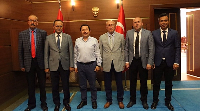 Apek Yönetim Kurulu Başkanı Sebahattin Karasakal, yönetim kurulu üyeleri ile birlikte Vali İrfan Balkanlıoğlu’na hayırlı olsun ziyaretinde bulundu.