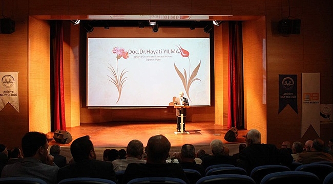 Programa, arifiye Kaymakamı Adem Yazıcı, Arifiye Belediye Başkanı İsmail Karakullukçu, Arifiye'de bulunan kurum ve kuruluşların temsilcileri, muhtarlar, imam hatipler ve vatandaşlar katıldı. Arifiye Merkez Camii İmam Hatibi İsmail Yayla Hoca efendinin Kur'an tilavetiyle başlayan program, Diyanet İşleri Başkanı Prof.Dr. Mehmet Görmez'in kutlu doğum haftası mesajının yayınlanması ile devam etti. Daha sonra Arifiye Müftüsü Mehmet Türkoğlu söz aldı. Arifiye Müftüsü Mehmet Türkoğlu konuşmasında;"Miladi 20 Nisan 571 Alemlere Rahmet olarak gönderilen Sevgili Peygamberimiz Hz. Muhammed Mustafa'nın (S.A.V) doğum günüdür. Kameri ay itibarı ile 12 Rebiülevvel yine, Sevgili peygamberimizin doğum yıldönümü olarak kutlanmaktadır. Değerli Kardeşlerim Rebiülevvel ayında mevlid programı tertip ediyoruz. Nisan ayında da Kutlu Doğum haftası olarak kutluyoruz. 1 Haftalık bir zaman dilimi içerisinde, Mü'min kardeşlerimize Peygamberimizi anlatmak, O'nun değerli şahsiyetini tanımak üzere ilmi, kültürel programlarla, konferanslarla, seminerlerle, değişik sanat etkinlikleri ile Hz. Peygamberimizi tanımaya çalışıyoruz. Allah (c.c) Resulü'nün doğumundan bu güne kadar 1446 yıl geçmiş. Tarihe göz attığımızda ilk defa Fatimiler döneminde Kahire'de Mevlid Kandili, Programını görüyoruz. Bizde ise; Süleyman Çelebi Vesilatün Necat (Kurtuluş Yolu) isimli şiirini yazmış. Sevgili Peygamberimizin doğumunu çok güzel ifadelerle anlatan bu şiir, Mevlid Kandillerinde, Osmanlı'dan itibaren 600 yıl boyunca biz Müslümanların doğumunda, ölümünde, sünnetinde, düğününde okunuyor. Bu vesile Peygamberimizi hatırlıyor, Ona olan sevgimizi, O'na olan bağlılığımızı tazeliyoruz. Sevgili Kardeşlerim Diyanet İşleri Başkanlığı bu kutlamalara fikir, bilim ve kültürel yönden daha bir etkinlik kazandırabilmek, bu günün ve yarının nesline Peygamberimizi tanıtmak, O'nun sevgisini vermek için geniş bir kutlama programı tertip etmiş ve 1989 yılından itibaren 28 yıl boyunca Dinimizi ve Peygamberimizi neslimize tanıtmak için Diyanet İşleri Başkanlığı Teşkilatı olarak gayret göstermiştir. Bu gün, düzenlediğimiz program da onlardan biridir Değerli kardeşlerim; bugünün nesli Peygamberimizin nefesine muhtaç.Hepimiz O'na muhtacız. Allah'u Zülcelal Kur'an-ı Keriminde, Allah'ın (c.c.) Resulünde sizin için güzel örnekler vardır buyuruyor. Allah (c.c) Resulünü güzel, Ahlaki örnekle donatmış. O özelliklerden biri de güvenilir olmaktır. Diyanet İşleri Başkanlığımız düzenlediği programlarda her yıl bir temayı ele alıyor. Bu yılın teması da, bu gün en çok ihtiyaç duyduğumuz şey;"Güven." Bu senede Hz. Peygamber ve Güven Toplumu oluşturmak için bu konuyu işliyoruz. Bu konuda sizleri bilgilendirmek için, sakarya Üniversitesi İlahiyat Fakültesi Öğretim Üyesi Doç Dr. Hayati Yılmaz Bey hocamızı sahneye davet ediyorum. Ben hepinize davetimize icabet edip, bizleri onurlandırdığınız teşekkür ediyorum. Kutlu Doğum Haftamızın hepimiz için hayırlara vesile olmasını Cenab-ı Allah'tan niyaz ediyorum." Doç Dr. Hayati Yılmaz konferansında Hz. Peygamberin hayatı, tüm insanlara örnek olan ahlakı hakkında bilgiler verdi. Yılmaz;" Mekke'de tüm insanlar özellikle ve Müşrikler O'na güvenirdi. Yalan söylediğine, verdiği sözden caydığına hiç kimse şahit olmamıştır. Bu yüzden peygamberimize Muhammed-ül Emin sıfatını vermişlerdi. Peygamberimiz İslam'ı tebliğe başladığında O'na deli, dediler, divane dediler, sihre uğramış dediler, ancak bir tek şey diyemediler. Neydi o? Yalancı, sahtekar diyemediler. Çünkü O'nun en güvenilir insan olduğunu hepsi biliyordu. Aslında O'nun tebliğlerinin de doğru olduğunu biliyorlardı. Mekkeli müşrikler sırf kurdukları düzen, zevk-i sefa içindeki hayatları değişmesin diye iman etmediler. Bu gün ise sevgili kardeşlerim, bizler kasvetli, sıkıntılı hayatlarımızdan bir an olsun sıyrılmak, ruhsal olarak rahatlamak için Peygamberimize muhtacız. O'nun örnek hayatını model olarak almaya, yaşantımıza uygulamaya, bir birimizi sevmeye, gözetmeye muhtacız. Bu programları ise; Sevgili Peygamberimizi hayatımıza, işimize, evimize ocağımıza misafir etmemin bir vesilesi olarak görmeliyiz. Sevgili Peygamberimiz hayattayken bir gün gelecek ta Yemen'den bir kadın, tek başına devesine binecek, Mekke'ye gelip Haccını yapacak ve güven içerisinde evine dönecek. İşte O günü özlüyorum. demiştir. Değerli kardeşlerim Allah, insanlığa yüzlerce, binlerce peygamber göndermiştir. Bu bile insanlık için büyük bir ihsandır, lütuftur. Eğer peygamberler gelmemiş olsaydı, belki de biz Allah'ımızı ve dinimizi tanıyamayacak, O'nun bizden ne istediğini bilemeyecektik. İşte Allah peygamberler ve Onları donattığı üstün vasıflarla bizlere örnek olmalarını sağlamış, hayatımızı düzeltmemize vesile etmiştir." dedi. Konferans sonrasında protokol ve misafirler Kutsal Emanetler Sergisini gezdi. Ayrıca programda misafirlere Sevgili Peygamberimize hatırlatan gül, Dinimiz İslam Kitabı ve kutlu doğum aşı ikram edildi.