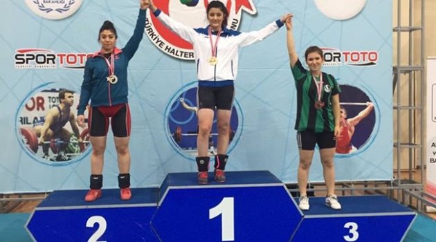 Fethiye'deki Büyükler Ferdi Türkiye Halter Şampiyonasında Sakarya'lı Haltercilerden Emine Ayyıldız, koparmada 76 , silkmede 95 kilo kaldırarak 69 kiloda Türkiye 3.sü oldu.