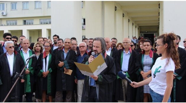 Sakarya Barosu, Adliye Binası önünde yaptığı basın açıklamasında avukatların yoğun katılımı ile bir kez daha darbe teşebbüsünü lanetledi.