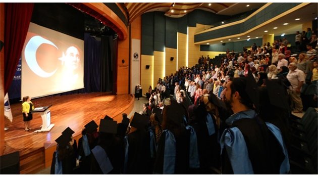 Tören, öğrencilerin mezuniyet yeminini etmeleri ve kep atmaları ile sona erdi.