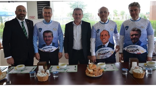 Sakaryapark içerisindeki Nehir Sefası tesislerinde misafirlerini Başkan Yardımcıları Ali Akdeniz ve Muhammet Kıratlı ile birlikte ağırlayan Erenler Belediye Başkanı Cavit Öztürk tüm Erenlerspor camiasını başarılarından dolayı tebrik etti.Öztürk; “Türkiye Şampiyonluğu yolunda Erenlersporumuzun başarıları takdire şayandır. Başta Yöneticileri olmak üzere hocaları ve sporcu kardeşlerimizi tebrik ediyor başarılarının devamını diliyorum. Şimdi artık hedef Türkiye Şampiyonluğu. Takımı yalnız bırakmayan taraftarları ve emeği geçen herkesi bir kez daha tebrik ediyor, Türkiye Şampiyonluğu yolunda başarılar diliyorum” dedi.Erenler Belediye Başkanı Cavit Öztürk ve Başkan Yardımcıları Ali Akdeniz ile Muhammet Kıratlı için yaptırdıkları özel formaları kendilerine takdim eden Erenlerspor Kulüp Başkanı Tacettin Öztürk ise konuşmasında Erenler Belediye Başkanı Cavit Öztürk’e desteklerinden dolayı teşekkür etti. Tacettin Öztürk; “Teknik heyet ve sporcularımızı gönülden kutluyorum. Disiplinli çalışmalarımızın ve alın terimizin karşılığı olarak U19 Sakarya Şampiyonu olduk ve inşallah Türkiye Şampiyonluğu yolunda Erenleri ve Sakarya’yı en iyi şekilde temsil edeceğimize inanıyorum” dedi.