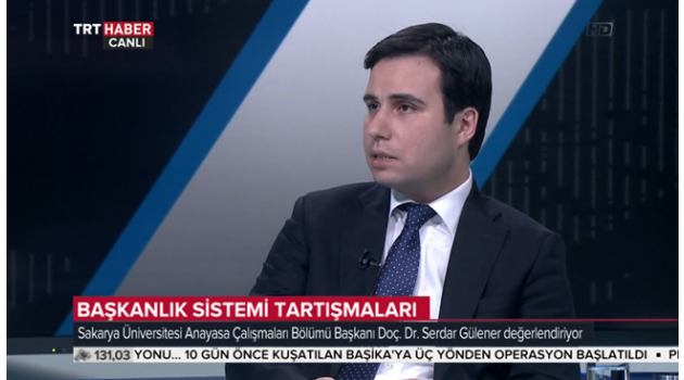 Sakarya Üniversitesi Anayasa Çalışmaları Uygulama ve Araştırma Merkezi (AÇAMER) Müdürü Doç. Dr. Serdar Gülener, TRT HABER kanalı canlı yayınında son günlerde yeniden gündeme gelen Başkanlık Sistemi tartışmaları kapsamında sistemin detaylarını anlattı.