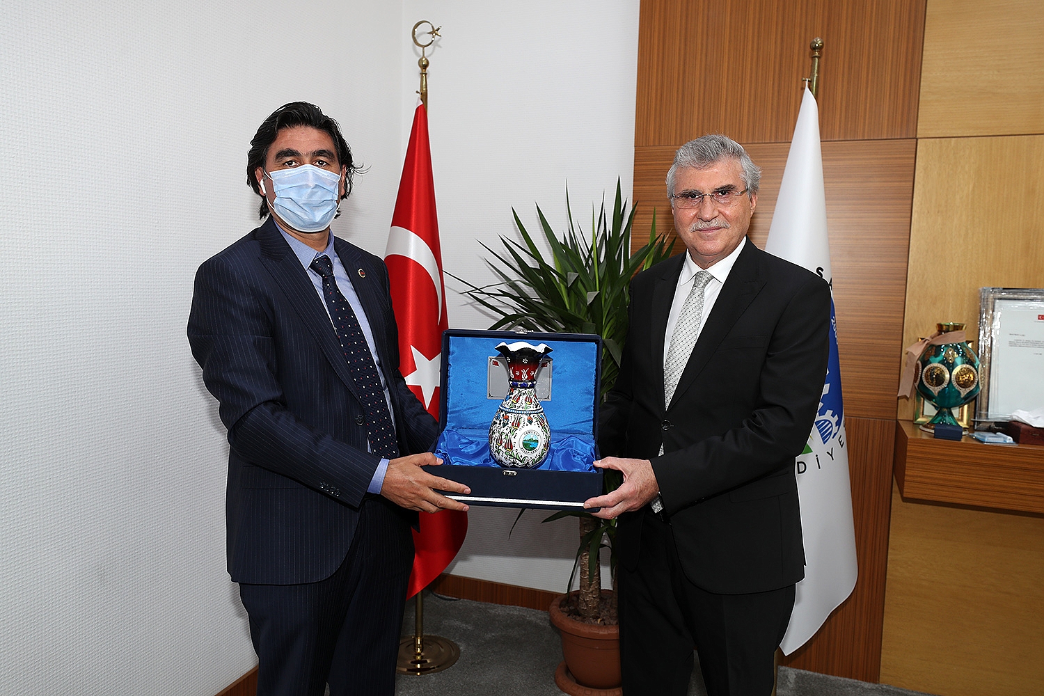 Ağrı İl Başkanı Abbas Aydın, İl Başkan Yardımcısı Yüksel Çelik ve Taşlıçay Belediye Başkanı İsmet Taşdemir’i konuk eden Başkan Ekrem Yüce, “Kardeş belediyelerimiz ile ortak zeminde buluşarak bilgi ve tecrübe paylaşımını daha da arttırmak istiyoruz. Her iki şehir arasındaki bağları güçlendirmek, dayanışma ve paylaşma kültürü oluşturmak ve belediyelerimiz arası ilişkiyi geliştirmek için attığımız adımın inşallah en yakın süreçte meyvelerini alacağız” dedi.