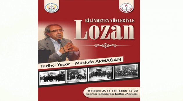 08 Kasım 2016 Salı günü, Erenler Belediyesi Kültür Merkezinde saat 13.30’da, “Lozan’ın Bilinmeyen Yönleri” konulu bir konferans verecek Armağan’ın, 24 Temmuz 1923 yılında Türkiye ile İtilaf Devletleri arasında imzalanan ve şimdiye kadar olumlu ve olumsuz çeşitli yorumlar yapılan Lozan Antlaşması ile ilgili ilginç açıklamalarda bulunması bekleniyor.