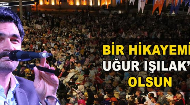Sanatçı Uğur Işılak, Adapazarı Belediyesi önünde düzenlen konserde, çoğunluğu gençlerin oluşturduğu, sevenleriyle buluştu. Işılak’ın konserini, Aile ve Sosyal Politikalar Bakanı Ayşenur İslam, Bakan Yardımcısı Çiğdem Erdoğan Atabek, AK Parti Sakarya Milletvekili Şaban Dişli, Sakarya Büyükşehir Belediye Başkanı Zeki Toçoğlu, Adapazarı Belediye Başkanı Süleyman Dişli, Adapazarı İlçe Başkanı Mustafa Ak, AK Parti Sakarya İl Gençlik Kolları Başkanı Yusuf Demir, AK Parti Sakarya Kadın Kolları Başkanı Zehra Hatipoğlu, AK Parti, AK Parti Sakarya Milletvekili Adayları Recep Uncuoğlu, Ali İhsan Yavuz, Bilgehan Doğru ve binlerce AK Parti sevdalısı gençler izledi.GENÇLERDEN SÖZ ALDIIşılak’a teşekkür ederek sözlerine başlayan Aile ve Sosyal Politikalar Bakanı Ayşenur İslam, “Fikrimizi zikreden ozanımızla yol arkadaşı olmaktan büyük mutluluk ve gurur duyuyoruz. Yarını inşa ederken ağabeylerinizle, ablalarınızla, annelerinizle ve artık sizlerle de beraber yürümek istiyoruz. Bizim yol arkadaşımız olmanızı ve bu davanın sancağının hiçbir zaman inmemesini istiyoruz” dedi. İslam, konuşmasının sonunda gençlerden 7 Haziran’da AK Parti bayrağını Sakarya’da bir önceki seçimlerden daha güçlü şekilde dalgalandırma sözü aldı.