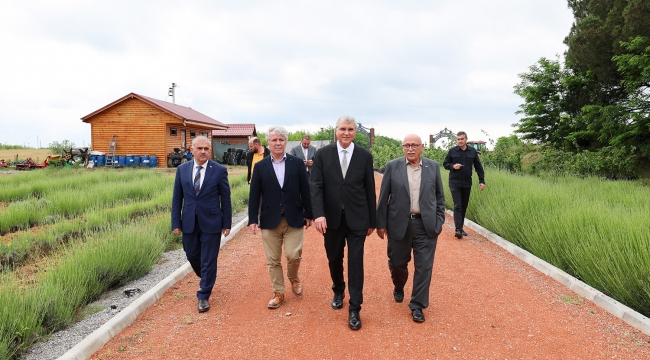 Sakarya Büyükşehir Belediye Başkanı Ekrem Yüce, Teknopark İstanbul Yönetim Kurulu Başkanı Prof. Dr. Metin Yerebakan ile Melen Botanik Vadisi’ni ziyaret etti. 21 çeşit bitkinin yetiştiği alanda incelemelerde bulunan ikili, devam eden çalışmalarla ilgili yetkililerden bilgi aldı. Prof. Dr. Yerebakan, Melen Botanik Vadisi’nin çok ciddi bir çalışmanın ürünü olduğunu ifade ederek, Başkan Ekrem Yüce ve ekibini tebrik etti.21 farklı çeşitte 3 milyonu aşkın bitkiProje hakkında bilgi veren Başkan Yüce, “Botanik Vadimizin bulunduğu alanda Melen isale hattının tam üzerinde. Atıl bir vaziyette olan bu alanı ekonomiye kazandırmak, üretim alanı haline getirmek için önemli adımlar attık. Hamdolsun kısa süre içerisinde de hem katma değer ürettik, hem de şehrimizde bu alanda bir farkındalık oluşturduk. Lavanta, kekik, adaçayı, biberiye, ıhlamur, akasya, defne, kuşburnu, kedi otu gibi birbirinden farklı 21 çeşit bitkiyi burada toprakla buluşturduk. 3 milyonu aşkın bitkinin dikimini gerçekleştirdik. Hasat edilen ürünlerin önemli bir kısmı ihraç ediliyor, geriye kalan kısmı ise, Büyükşehir Belediyesi çatısı altında çay, yağ, hidrosol, krem ve kozmetik alanlarında üretim yapıp hemşerilerimizin istifadesine sunuyoruz” dedi.Botanik Park vadiyi yaşam merkezi yapacakBaşkan Yüce, proje alanını sosyal yaşam merkezi haline taşıyacak adımları attıklarını da ifade ederek, “Hâlihazırda bisiklet yolumuz vadinin içerisinde yer alıyor. Şimdi de çok özel bir proje hazırladık. Yapım çalışmalarına başladık. Koleksiyon bahçesi, serası, sosyal tesisi, yeşil alanları, dinlenme alanları, yürüyüş yolları, kamelyalarıyla inşallah Botanik Park harika bir alan olacak. Şehrimizin kuzeyi yaz sezonunu açtı. Bu vesileyle hem hemşerilerimiz hem de misafirlerimiz mutlaka Melen Botanik Vadimizi ziyaret ederek, dünyada eşi benzeri olmayan projemizi de yakından inceleme fırsatı bulacaklardır” diye konuştu.