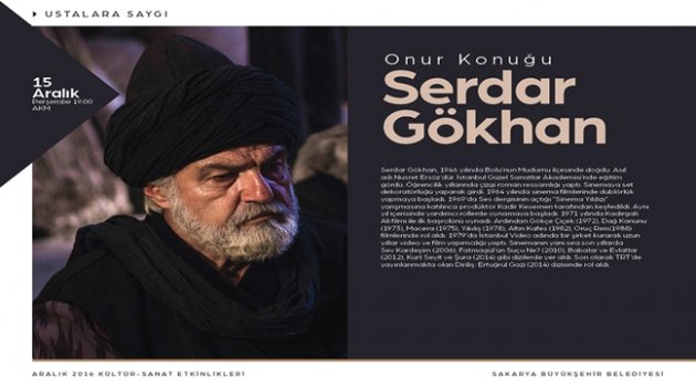 Günün bir diğer etkinliğinde ise usta oyuncu Serdar Gökhan’a saygı gecesi düzenlenecek. Saat 19.00’da AKM’de düzenlenecek programa Yapımcı ve Senarist Şevki Tosunoğlu, Sinema ve Tiyatro Oyuncuları Göksel Arsoy ile Mehmet Çevik konuşmacı olarak katılacak. Usta Oyuncu Serdar Gökhan da programda onur konuğu olarak yer alacak. Kültür ve Sosyal İşler Dairesi Başkanlığı’ndan yapılan açıklamada, “Etkinliklere tüm kültür sanat dostları davetlidir” denildi.