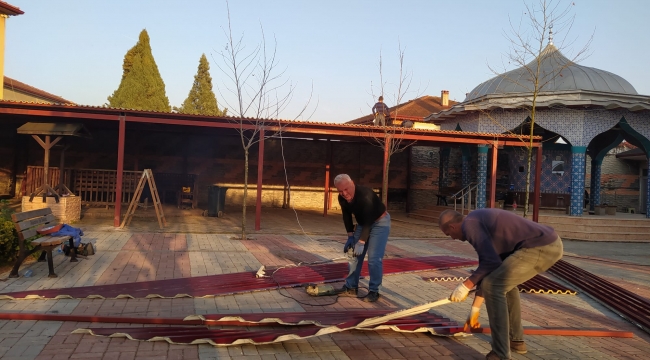 Cami bahçesinde cemaatin yağmurdan ve güneşten korunması amacıyla yaptırılan üstü kapalı