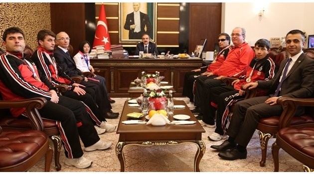 Sporcuları makamında ağırlayan Sakarya Valisi Hüseyin Avni Coş yaptığı konuşmada, “Başarıların daim olsun. Engellilerin spor yapmak için bahane olmayacağını gösteriyorsunuz. Aldığınız dereceler, gösterdiğiniz başarılar toplumumuzun bütün fertlerine örnek teşkil ediyor. Sizler bütün engelleri aşıp spora alaka göstermeniz, bunun ötesinde önemli dereceler almanız, başarılar kaydetmeniz her türlü taktirin üzerindedir.Hem ferdi hem takım olarak en iyi dereceleri almanızı aynı zamanda Sakarya’mızın adının duyulmasına tanıtılmasına katkı sağlamanızı temenni ediyorum. Sizleri bir kez daha kutluyorum” diye konuştu.