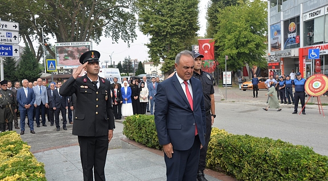 30 Ağustos Zafer Bayramının 100. Yıl dönümü Hendek Cumhuriyet Meydanı’nda düzenlenen törenle kutlandı. Atatürk Anıtı'na çelenk sunumunun yapılmasının ardından Kaymakamlık makamında tebrikler kabul edildi.