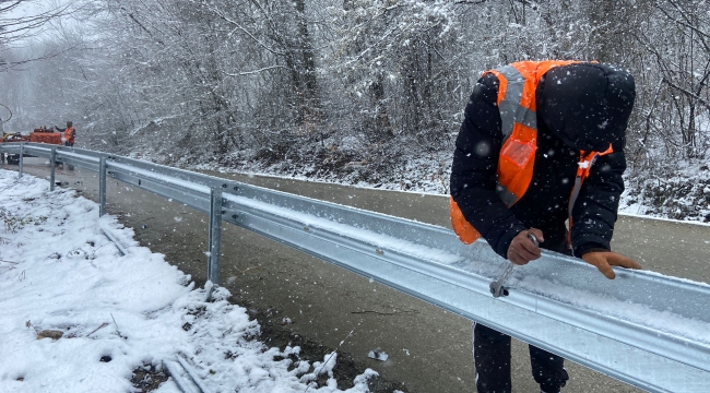 Büyükşehir Belediyesi, can ve mal kaybını önlemek için şehrin trafik ağında özellikle kırsal bölgelerdeki virajlı yolları kar, kış demeden çelik bariyerle çeviriyor.