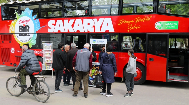 Sakarya Büyükşehir Belediyesi, şehrin turizmine değer katmak ve şehrin güzelliklerini dünyaya tanıtmak için çalışıyor. Tabiatın en güzel örneklerini barındıran kentte, doğal alanlardaki tesisleri yenileyen ve yeni turizm alanları açan Büyükşehir, son olarak Turizm Otobüsü’nü hizmete almıştı.Sakarya’yı keşfediyorlar2 katlı olan ve turlar için dizayn edilen otobüs, 15-22 Nisan Turizm Haftası sebebiyle Kitap Sokağı’nda tanıtıma açıldı. Kurulan stantta Sakarya’nın turizm noktaları, doğal güzellikleri ve adım adım her noktası anlatıldı. Burayı ziyaret eden vatandaşlar, şehrini keşfetmek için yeni planlarının altyapısını oluşturdu.Öte yandan, görmek isteyenler tur otobüsüne binerek inceleme fırsatı buldu. Turizm ve Tanıtım Şube Müdürlüğü’nden bayram sonrası otobüsle ücretsiz turizm gezilerinin ve turların başlayacağını belirtti.Turlar başlıyorBüyükşehir Belediyesi’nden yapılan açıklamada, “Sakarya’mızın her köşesini keşfetme isteyen ve tabiatını görmek isteyen yerli ve yabancı tüm turistleri bizzat ağırlayacağız ve karış karış gezdireceğiz. Doğanın en güzel yüzünü, kentin yeşilini, doğasını ve doğal kaynaklarını dünyaya tanıtacağız. Bayram sonrası başlayacak turizm turlarımıza tüm vatandaşlarımızı bekliyoruz. Detaylar sakarya.bel.tr’de paylaşılacak” denildi.