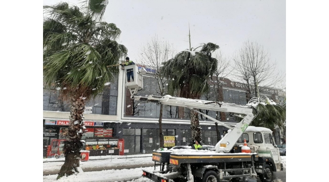 Büyükşehir Belediyesi ağaçlarda oluşabilecek kırılmaları önlemek, maddi zararların önüne geçmek adına kar temizleme çalışmalarını sürdürüyor.