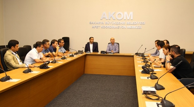 Sakarya Büyükşehir Belediyesi Afet Koordinasyon Merkezi’nde (AKOM) hava muhalefeti üzerine toplantı yapıldı. ToplantıyaSu ve Kanalizasyon İdaresi (SASKİ) Genel Müdürü Dr. Rüstem Keleş, Büyükşehir Genel Sekreter Yardımcısı Ayhan Kardan ve ilgili daire başkanlıkları katıldı. Ayhan Kardan, Çevre illerde oluşan sel duruma karşılık şehirde önelemlerin alındığını belirtirken; Rüstem Keleş, özellikle şehrin kuzey bölgelerinde oluşabilecek sel ihtimaline karşı dün geceden itibaren ekiplerin önlem almaya başladığını söyledi.En az zararlaSakarya’ya kısa sürede afete dönüşebilecek miktarda yağış düşebileceğine dikkati çeken Keleş, “Sağnak yağmur olayının ardından oluşabilecek sel afetini en az zararla atlatmak için neler yapılabileceğini biliyoruz. Şehrimizin kritik bölgelerinde ekip sayımızı arttırdık. Yağmur miktarının 80-100 mm çıktığında henüz yağmur suyu hattı tamamlanmamış yerler için su baskını sıkıntısı yaşayabilme ihtimalimize karşı oralardaki çalışmalara 200’e yakın iş makinaları ile destek vereceğiz” diye konuştu.Hassasiyet bekliyoruzBüyükşehir Genel Sekreter Yardımcısı Ayhan Kardan, “ Şehir içindeki kritik noktalar, şehir merkezi ve pek çok ilçe SASKİ ve Büyükşehir’in kontrolü altında. Sahada 400-500 personelimiz var. Özellikle taşkınlar yaşanmasın vatandaşlarımız maddi manevi herhangi bir hasar görmesin diye çalışmalarımızı titizlikle yürütüyoruz. Vatandaşlarımızdan yağışalara karşı dikkatli olmaları konusunda hassasiyet bekliyoruz” ifadelerini kullandı.