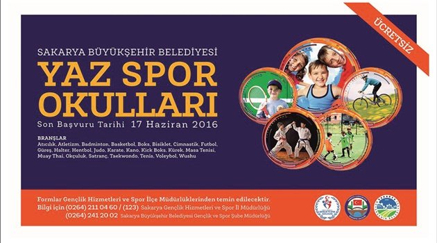 Sakarya Büyükşehir Belediyesi Yaz Spor Okullarında 16’ıncı dönem kayıtları başladı. Konu ile ilgili açıklamalarda bulunan Büyükşehir Kültür ve Sosyal İşler Dairesi Başkanı İbrahim Aktürk, “Bu yaz 24 branşta 7-15 yaş grubundaki öğrencilerimizi yeniden ağırlayacağız. Yaz Spor Okullarında alanında uzman 200 eğitmen görev yapacak. İnşallah faydalı bir yaz dönemi daha öğrencilerimizi bekliyor ” diye konuştu.24 Farklı BranşAktürk, “16 ilçede tüm hazırlıklarımız sonlandı. Ücretsiz Yaz Spor Okullarında; Atıcılık ve Avcılık,Futbol, Okçuluk, Atletizm, Halter, Tenis, Kürek, Badminton, Hentbol, Masa Tenisi, Boks, Judo, Muay- Thai, Bisiklet, Voleybol, Satranç, Basketbol, Karate, Kano, Cimnastik, Kick Boks, Taekwondo, Güreş, Wushu olmak üzere toplam 24 branşta öğrencilerimizi ağırlayacağız” diye konuştu.Alanında Uzman 200 EğitmenYaz Spor Okullarının gençler için önemine de değinen İbrahim Aktürk, “Alanında uzman 200 eğitmenin görev yapacağı Yaz Spor Okullarında; öğrencilerin kötü alışkanlıklarından uzaklaştırılmaları, serbest zamanlarını değerlendirmeleri, sağlıklı bireyler olarak yetiştirilmeleri ve yetenekli öğrencilerin tespit edilmesini amaçlıyoruz. İnşallah faydalı bir yaz dönemi daha öğrencilerimizi bekliyor” ifadelerini kullandı.10 Bin GençAktürk Yaz Spor Okullarına katılım süreciyle ilgili olarak da, “İlçelerimizdeki Gençlik Hizmetleri ve Spor İlçe Müdürlükleri ile Sakarya Büyükşehir Belediyesi Kültür ve Sosyal İşleri Dairesi Başkanlığı’ndan temin edilebilecek yaz spor okulları kayıt formları, etkinliğe katılmak isteyen öğrenciler tarafından doldurularak Gençlik Hizmetleri ve Spor İlçe Müdürlüklerine teslim edilecek. 10 bin kişinin katılması planlanan Yaz Spor Okullarına son başvuru tarihi ise 17 Haziran Cuma günü” dedi.Ayrıntılar İçin Bize UlaşınKültür ve Sosyal İşler Dairesi Başkanı İbrahim Aktürk, “Sakarya Büyükşehir Belediyesi Yaz Spor Okulları hakkında daha detaylı bilgi almak isteyenler; Sakarya Gençlik Hizmetleri ve Spor İl Müdürlüğü’nün 211 04 60 (dâhili: 123) nolu telefonundan ya da Sakarya Büyükşehir Belediyesi Gençlik ve Spor Şube Müdürlüğü’nün 241 20 02 nolu telefonundan bilgi alabilirler” şeklinde konuştu.