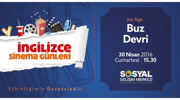 Sakarya Büyükşehir Belediyesi Sosyal Gelişim Merkezi İngilizce sınıfı tarafından düzenlenen sinema etkinlikleri minik izleyiciler ile buluşuyor. Bu kapsamda 30 Nisan Cumartesi günü, saat 15.30’da Sosyal Gelişim Merkezi Konferans Salonu’nda gerçekleştirilecek gösterimde minik sinemaseverler ‘Buz Devri’ animasyon filmini İngilizce olarak izleyecek. Konuyla ilgili yapılan açıklamada; “İngilizce Sinema Günlerimiz ‘Buz Devri’ animasyon filmi ile devam edecektir. 30 Nisan Cumartesi günü, saat 15.30’da gerçekleştirilecek gösterime tüm çocuklarımız davetlidir” ifadelerine yer verildi. Ayrıca konuyla ilgili ayrıntılı bilgi almak isteyenlerin 44 44 0 54 (dâhili: 3787) nolu telefonu arayabileceği kaydedildi.