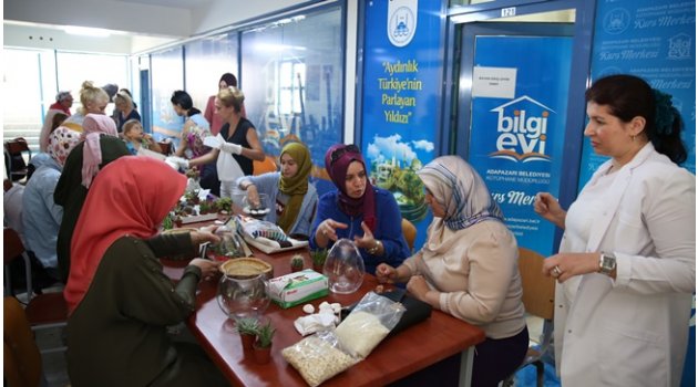 Adapazarı Belediyesi Bilgi Evi Camili Ek Hizmet binasında çiçek ve bitki süslemekleri olarak bilinen Teraryum kursu açıldı. Kursun ilk gününde minik bahçeler olarak adlandırılan Teraryum Sanatına kadınlar büyük ilgi gösteriyor.