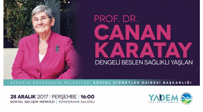 Büyükşehir YADEM tarafından düzenlenen ‘Dengeli Beslen Sağlıklı Yaşlan’ başlıklı konferansa Prof. Dr. Canan Karatay konuşmacı olarak katılacak. Program 28 Aralık Perşembe günü saat 16.00’da SGM’de gerçekleştirilecek.