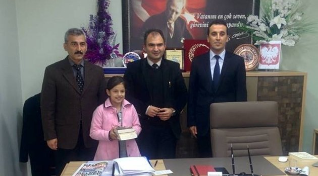 Geyve İlçe Milli Eğitim Müdürü Mehmet Salih CANBAL makamında kabul ettiği Sude ÇAPOĞLU’na TBMM’nin il birincilerine gönderdiği TBMM logolu plaket ve çeşitli hediyeler verdi. Canbal, Öğrencinin sınıf öğretmeni İbrahim YILDIRIM’a ve okul müdürü Zikrullah ÖZ’e, de tebrik ederek cemal gürsel İlkokulunun başarılarının devam etmesi dileklerinde bulundu.