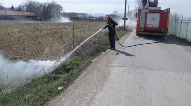 Sakarya'nın Adapazarı ilçesinde yol kenarında bulunan otluk alanda çıkan yangın itfaiye ekiplerince söndürüldü.
