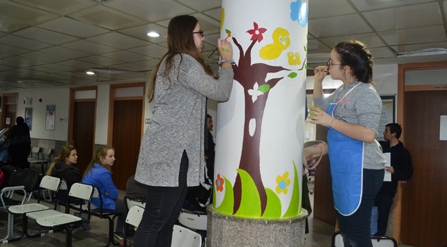 "Çocukların Dünyasını Renklendirelim" sloganıyla yürütmeye başlattıkları projede sakarya Kadın Doğum ve Çocuk Hastanesinin koridorlarını gönüllü öğretmen ve öğrencileri bir araya gelerek renklendirmeye başladı. Bu proje ile çocukların hastane korkularını yenmesine katkı sağlamayı hedefleyen Vakıf Okulları öğretmen ve öğrencileri, çocuklar için hastane ortamını daha eğlenceli bir ortama dönüştürmeye çalışıyor. Sakarya Üniversitesi Vakfı Özel Anaokulu Zümre Başkanı Gülşah ÇEBER:"Tedavi görmekte olan çocuklarda oluşan olumsuz düşünceleri azaltmak ve hastane korkusunu yenmek amacıyla yaptığımız boyama etkinliğinde, çocukların çok sevdiği Keloğlan, Nasreddin Hoca karakterleri, çeşitli doğa görünümleri ve anne çocuk figürleri duvarları süsleyecek. Bizler kurum olarak böyle bir proje yürütmekten hem çok büyük keyif duyuyor hem de çocuklarda yaşatmayı planladığımız mutluluktan dolayı heyecanlanıyoruz." dedi.