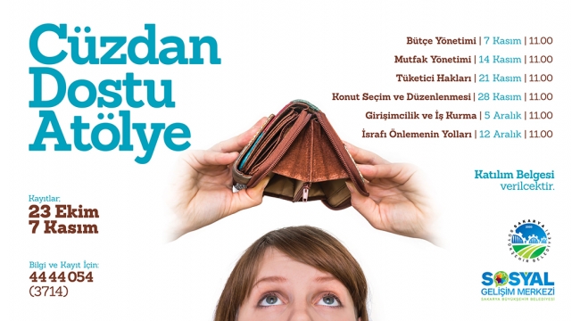 Sakarya Büyükşehir Belediyesi sosyal gelişim merkezi örnek bir projeye daha imza atıyor. ‘Cüzdan Dostu Atölye’ projesiyle kadınlara ev ekonomisi bilinci aşılamak ve sosyo-ekonomik bilinçlendirme çalışmalarına katkı sağlamak hedefleniyor. 23 Ekim Pazartesi günü itibariyle atölyeye başvuruların başlayacağını açıklayan Sosyal Hizmetler Dairesi Başkanı Davut Yüce, “7 Kasım Salı gününe kadar devam edecek başvurulara tüm vatandaşlarımızı bekliyoruz” dedi.Aile hayatının temel taşı ev ekonomisi‘Cüzdan Dostu Atölye’ hakkında bilgi veren Davut Yüce, “Toplumun hayat seviyesini yükseltmek için ev ve aile hayatının temel taşı olan ‘ev ekonomisi’nin öğretilmesi elzemdir. Evi idare eden kişi, eğer bilinçli ise en az miktarda parayı ya da kaynağı; en iyi şekilde değerlendirmek için çaba sarf edecektir. Bilinçli bir tüketim o ailenin ekonomisini ve toplumun temel taşı olması dolayısıyla da ülkenin ekonomisini etkileyecektir. ‘Cüzdan Dostu Atölye’ eğitim seminerlerine her aileden en az bir kişiyi bekliyoruz.. Tüm halkımızı ‘Cüzdan Dostu Atölye’ye davet ediyorum” ifadelerini kullandı.Başvurular hakkında bilgi almak içinDavut Yüce, “Cüzdan Dostu Atölye’de farklı tarihlerde Bütçe Yönetimi, Mutfak Yönetimi, Tüketici Hakları, Konut Seçim ve Düzenlenmesi, Girşimcilik ve İş Kurma, İsrafı Önlemenin Yolları başlıklı eğitimler gerçekleşecek. Eğitim sonunda katılımcılara katılım belgesi verilecek. İlk atölyemiz 7 Kasım Salı günü saat 11.00’da gerçekleştireceğimiz Bütçe Yönetimi eğitimi ile başlayacak. 23 Ekim–7 Kasım tarihleri arasında yapılacak olan başvurular hakkında bilgi almak isteyen vatandaşalarımız, Sosyal Gelişim Merkezi’nin 444 40 54 (3714) numaralı telefonunu arayabilirler” diye konuştu