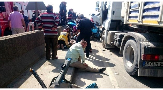 Kazada hurdaya dönen bir otomobilin içerisinde sıkışan Havva Kutlu (43) olay yerinde hayatını kaybederken, Belgin Tavlı (34), Nevin Demirbağ (36) ile henüz ismi öğrenilemeyen 2 yaralı ambulanslarla çevre hastanelere taşındı. Eşinin öldüğü haberini alan Tahsin Kutlu ise gözyaşlarına boğuldu.