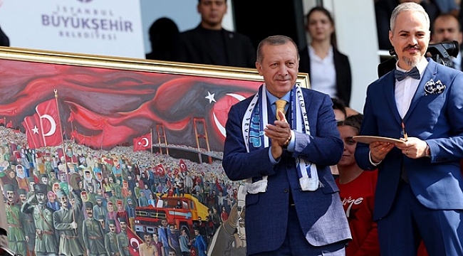 Geyve’nin damadı resim Öğretmeni Ertuğrul Çakır, Kasımpaşa stadında düzenlenen İmam Hatip Gençlik Buluşmasında Cumhurbaşkanı Erdoğan’a Millet Tablosunu hediye etti. Cumhurbaşkanı Erdoğan kendisine hediye edilen ‘Millet’ isimli tabloyu boyayarak tamamladı.