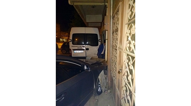 Virajı alamayarak direksiyon hakimiyetini kaybeden otomobil sürücüsü, bir iş yerinin vitrinine ve önünde duran park halindeki minibüse çarparak durabildi.
