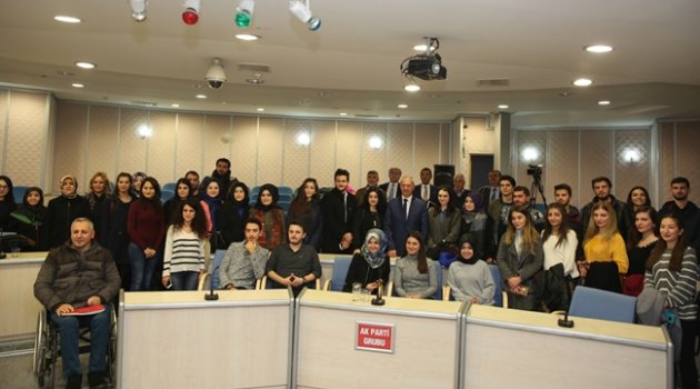 Adapazarı Belediye Başkanı Süleyman Dişli, meclis sonrası Sakarya Üniversitesi Siyasal Bilimler öğrencilerine Yerel Yönetimle ilgili bilgi verdi.