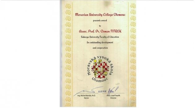 Çek Cumhuriyeti'nde düzenlenen “International Conference on Lifelong Education and Leadership for ALL (ICLEL 2015)” konferansının başarılı geçmesinden dolayı proje ortaklarından Çek Cumhuriyeti'nden Moravian University College Olomouc-MUCO, proje koordinatörü Sakarya Üniversitesi Eğitim Fakültesi Eğitim Bilimleri Bölümü öğretim üyesi Doç. Dr. Osman Titrek'e ödül olarak madalya ve ödül belgesi gönderdi.SAÜ, Çek Palacky Üniversitesi ve Moravian University College Olomouc işbirliğiyle Çek Cumhuriyeti’nde 28-31 Ekim 2015 tarihleri arasında gerçekleştirilen Uluslararası Hayat Boyu Eğitim ve Liderlik Kongresi’ne (ICLEL 2015) 18 farklı ülkeden yaklaşık 450 bilim insanı katılmış ve 220 bildiri sunulmuştu. Using Schools for Developing European Citizenship-USDEC 3 projesine öğrencileri ve bazı öğretim elemanları ile katılan ve konferansın gerçekleşmesini sağlayan ortaklardan birisi olan Moravian University College Olomouc-MUCO, her iki faaliyetin üstün başarısından dolayı ICLEL 2015 proje koordinatörü Doç. Dr. Osman Titrek'e ödül olarak kendi madalyalarını ve ödül belgesini gönderdi. Akademik performans ve başarı ödülünü Sakarya Üniversitesi adına kabul eden Doç. Dr. Osman Titrek, bu ödülü tüm proje ekiplerinde görevli öğrencilere, meslektaşlarına, desteklerinden dolayı SAÜ Rektörü Prof.Dr. Muzaffer Elmas'a, Moravian University College Olomouc-MUCO direktörü Josef Tesarik ve Rektörü Michal Mensik'e teşekkür etti. Doç. Dr. Osman Titrek, Sakarya Üniversitesi'nin bu uluslararası vizyonu ile başka meslektaşlarının da benzer ödülleri rahatlıkla alabileceğine inancının tam olduğunu sözlerine ekledi.