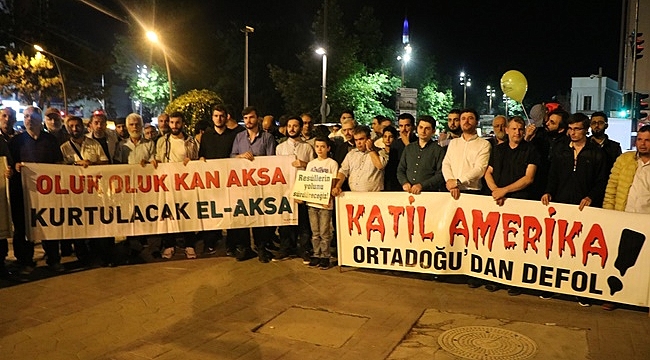 Atatürk Bulvarı Şemsiyeli Park önünde toplanan yaklaşık 150 kişi Dünya Kudüs Günü’nü kutlamak ve İsrail’i lanetlemek için eylem yaptı. Eylemde basın açıklamasını Diriliş Saati adına Ali Fethi Gürler okudu. Gürler, “Amerika’nın Suudi Arabistan üzerinden başta Türkiye ve İran olmak üzere Hamasa ve Hizbullaha ayar verme teşebbüsü geri tepti. Müslüman halklar Amerika’nın ılımlı radikal Şii, Sunni ve tüm Müslümanları karşı cephede birer düşman olarak gördüğüne tanıklık etti. Bu gelişme vahdet bilincimizin tekrar kuşanmamıza vesile oldu. Siyonist işgal çetesi hiçbir meşru dayanağı olmamasına rağmen 69 yıldır bu coğrafyada dünya şer güçlerini arkasına alarak kan ve gözyaşı döküyor. Siyonistler 3 kutsal mescidimizden biri ve ilk kıblemiz olan Mescidi Aksayı yıkmak ve Müslümanları başta Kudüs olmak üzere tüm Orta doğu coğrafyasından çıkarmak için her türlü hile ve zorbalığı yapıyorlar. Mescidi Aksa’nın altına tüneller kazarak sinagoglar inşa ediyorlar. Mescidi Aksa’da ve civarındaki diğer mekanlarda en ufak restorasyona müsaade etmeyen Siyonist İsrail rejimi Mescidi Aksa’nın altını oyarak yıkılması için her yolu deniyor. İslam ümmetinin izzeti için bugün Türkiye’nin ve dünyanın bir çok yerinde Müslüman ve mazlum halklar birkez daha ayağa kalkarak Siyonist rejime ve onun doğal müttefiki büyük şeytan Amerika’ya karşı verdikleri mücadelede kararlılıklarını yineliyorlar. Kudüs gününü kararlılıkla her yıl ramazanın son cumasında ihya ediyoruz. Rabbimize Kudüs özgürleşip İsrail’in ortadoğundan silinene kadar mücadelemize devam edeceğiz diyerek verdiğimiz sözü bir kez daha haykırmak için geldik bir araya. Filistin intifada hareket Siyonist rejim ve işbirlikçilerinin sonunu getirecektir. 2008 ve 2014 yılındaki Gazze direnişi bu iddialarımızın ispatı niteliğindedir. sakarya halkı olarak Kudüs, Mescidi Aksa gibi kutsallarımız korumak Filistin davasını her daim yanında yer almak noktasındaki kararlığımızı sürdüreceğimizi bu meydandan bir kez daha tekrarlıyoruz” dedi.