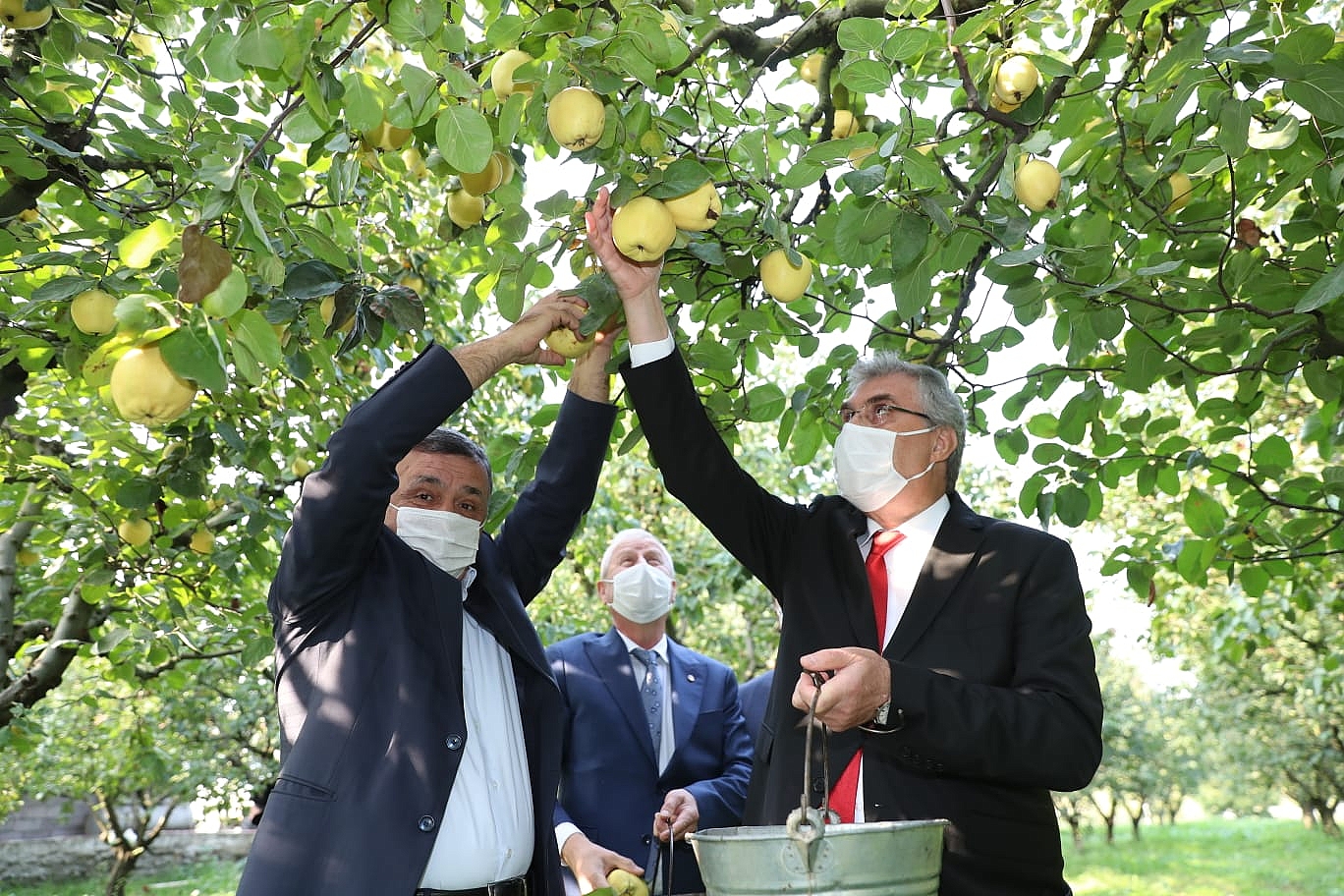 Sakarya Büyükşehir Belediye Başkanı Ekrem Yüce, Geyve’de ayva hasadına katıldı. Geyve Belediye Başkanı Murat Kaya ve Sakarya Ticaret Borsası Başkanı Adem Sarı’nın da katıldığı ayva hasadında Başkan Yüce, çiftçilere bol kazançlar diledi.Geyve’nin sarı elması tescillendiGeyve Belediye Başkanı Murat Kaya ise ayva hasadının bu yıl yüksek rekoltesi ve kalitesiyle üreticinin yüzünü güldüreceğini ifade etti. Sakarya Ticaret Borsası Yönetim Kurulu Başkanı Adem Sarı, “Coğrafi işaretli ürünlerle ilgili çalışmayı Geyve Belediyemizle beraber 3 yıldır sürdürüyorduk. 3 yıllık uğraş sonunda coğrafi işaretini tescilledik. Şehrimize hayırlı olsun” dedi. Bölgemizde ‘sarı elmas’ olarak adlandırılan ve birçok Avrupa ülkesine ihraç edilen Geyve ayvası, Geyve Belediyesinin ve Ticaret Borsasının iş birliğinde 3 yıl süren çalışmalar sonucu coğrafi işaret aldı. Coğrafi işaret alan Geyve ayvası artık tüm dünya literatüründe Geyve ayvası olarak adlandırılacak.Tüm dünyada tanınacakGeyve’de Yöresel Ürünler Pazarını ziyaret ettikten sonra çiftçilerle beraber ayva hasadına katılan Başkan Ekrem Yüce, “Geyve ilçemizde üretilen ve lezzetiyle dünyada ünlenen sarı elmasımız Geyve ayvasının hasadına katıldık. Ülkemiz Dünya Ayva üretiminin yüzde 70’ini karşılıyor. Sakarya’mız ise ülkemizde üretilen ayva ihtiyacının yüzde 60’ını karşılıyor. Yani ülkemizin ve dünyanın ayvasını şehrimiz üretiyor. Bunun yanı sıra Geyve Belediyemiz ve Ticaret Borsamız iş birliğinde yapılan çalışmalar sonucunda Geyve ayvası coğrafi işaret aldı. Bu işaret ile birlikte Geyve ayvamızın tüm dünyada bilinirliği artacak. Bu konuda çalışmalarıyla Geyve ayvasına tescil kazandıran Geyve Belediye Başkanımız Murat Kaya ve Ticaret Borsası Başkanımız Adem Sarı’ya teşekkür ediyorum. Çiftçilerimize bir teşekkürü borç biliriz. Emeklerine sağlık. Bu yıl da inşallah Geyve ayvamız yüksel rekoltesi ve kalitesiyle çiftçimizin yüzünü güldürecektir. Şehrimize hayırlı olsun” dedi.