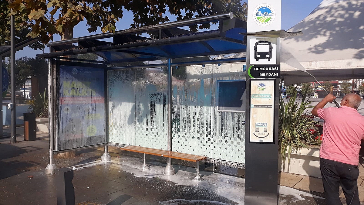 Sakarya Büyükşehir Belediyesi Ulaşım Dairesi Başkanlığı tarafından şehrin muhtelif yerlerindeki yolcu duraklarında yapılan temizlik çalışmaları tüm hızıyla devam ediyor. Ulaşım Dairesi Başkanlığı’ndan yapılan açıklamada, “Durak yıkama ekiplerimiz tarafından şehrin muhtelif yerlerindeki yolcu duraklarında temizlik çalışmalarımız devam ediyor. Koronavirüsle mücadelede ortak kullanım alanları arasında yer alan yolcu duraklarına yönelik dezenfekte çalışmalarımızı titizlikle sürdüreceğiz” denildi.