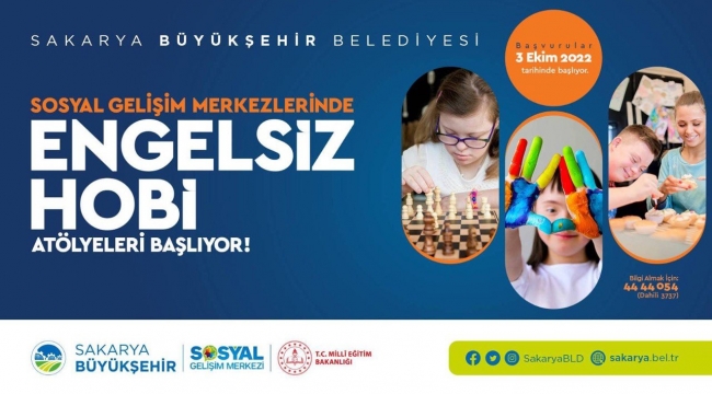 Sakarya Büyükşehir Belediyesi Sosyal Hizmetler Dairesi Başkanlığı Engelli Hizmetleri Şube Müdürlüğü tarafından Sosyal Gelişim Merkezi’nde gerçekleştirilen ‘Engelsiz Hobi Atölyeleri’nde yeni dönem başlıyor. 16 farklı branşta engelli bireylere eğitimlerin sunulacağı atölyeler için kayıtlar 3 Ekim Pazartesi günü alınacak. İlk ders zili ise 10 Ekim Pazartesi günü başlayacak. Kursiyerler aileleri ile birlikte atölyeler için Sosyal Gelişi Merkezi’nde kayıtlarını yaptırabilecek.10 EKİM’DE DERSLER BAŞLIYOREngelli bireylerin sosyal çalışmalara katılmaları, yeteneklerini keşfetmeleri için gerçekleştirilen atölyeler, aileler ve kursiyerler tarafından ilgiyle takip ediliyor. Seramik atölyesi, görsel sanatlar atölyesi, ahşap boyama atölyesi, engelsiz marifetli eller, mutfak atölyesi, Filografi, okuma yazma atölyesi, hayat güvenliği atölyesi, resim atölyesi, takı tasarımı atölyesi, bağlama, koro, piyano, halk dansları, drama ve ritim atölyeleri gibi geniş yelpazeye sahip olan hobi atölyelerinde dersler 10 Ekim Pazartesi günü başlayacak. Engelsiz bireyler atölyelerde hem öğrenecek hem de yeteneklerini keşfedecek. Engelsiz Hobi Atölyelerine ilişkin ayrıntılı bilgiye ise 444 40 54 (3737) numarasından ulaşılabilecek.