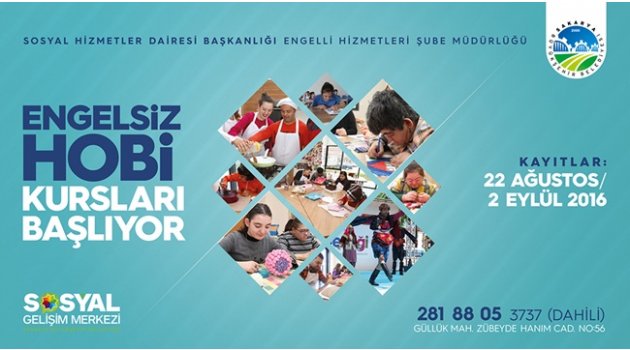 Büyükşehir Sosyal Gelişim Merkezi Engelsiz Hobi Kursları’nda yeni dönem kayıtları başladı. 2 Eylül Cuma gününe kadar sürecek kayıtların ardından dersler 19 Eylül Pazartesi günü başlayacak.